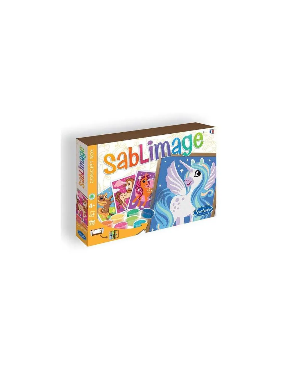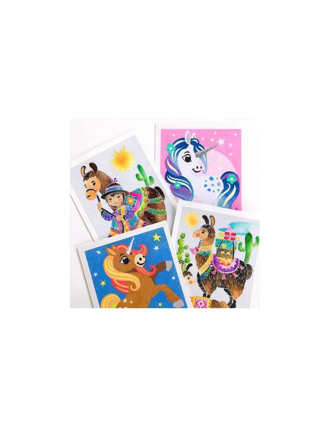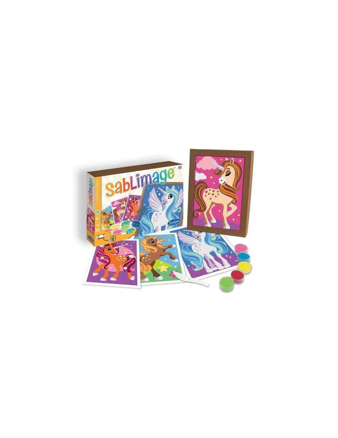 Découvrez le coffret Sablimage licornes de Sentosphère, un coffret de sables colorés pour les enfants à partir de 4 ans, 4 tableaux à réaliser à offrir ou à encadrer sur le thème des licornes.
