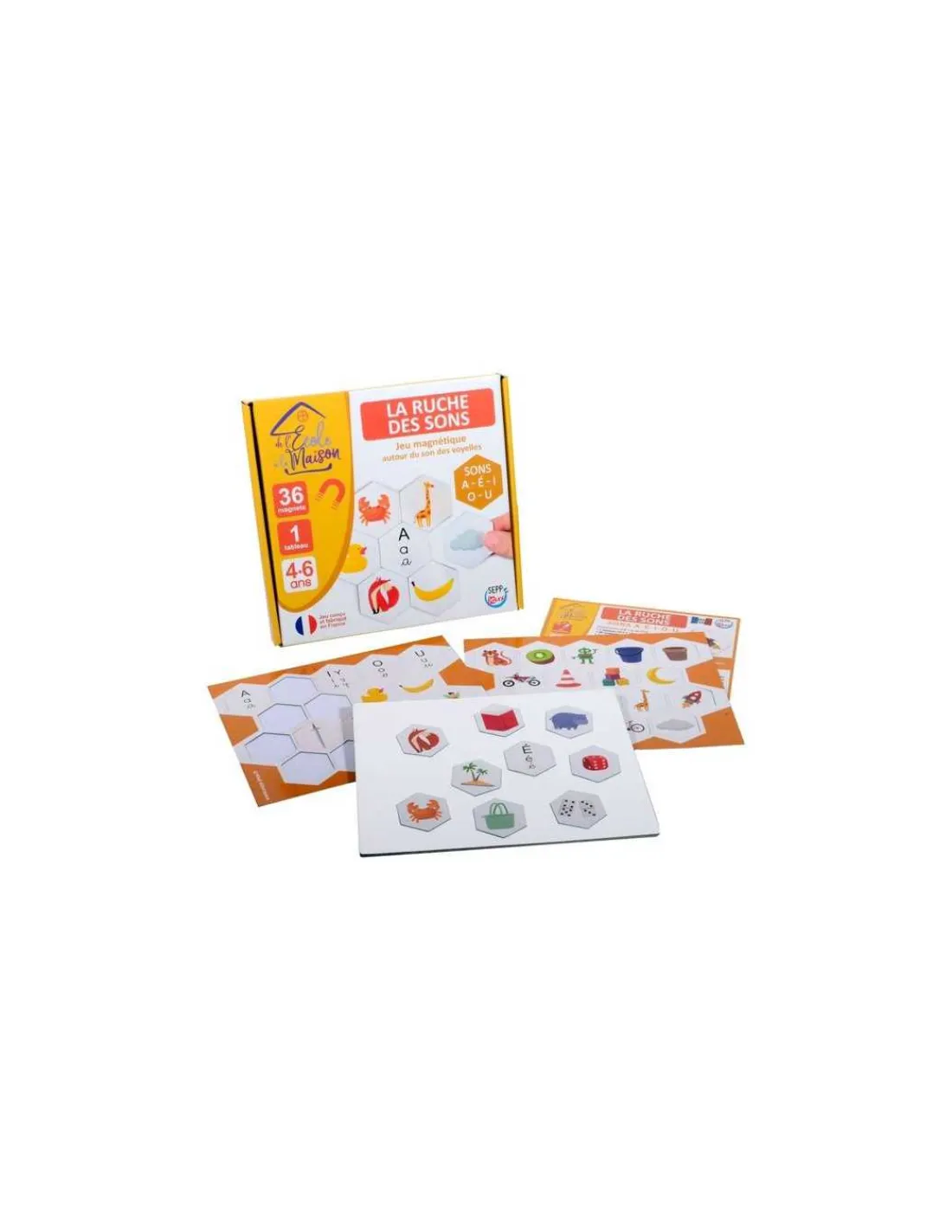 Découvrez le jeu magnétique La Ruche des Sons de la collection « De l’école à la Maison » de SEPP Jeux, un jeu éducatif avec des pièces magnétiques autour du son des voyelles. Un jeu magnétique fabriqué en France pour les enfants de 4 à 6 ans.
