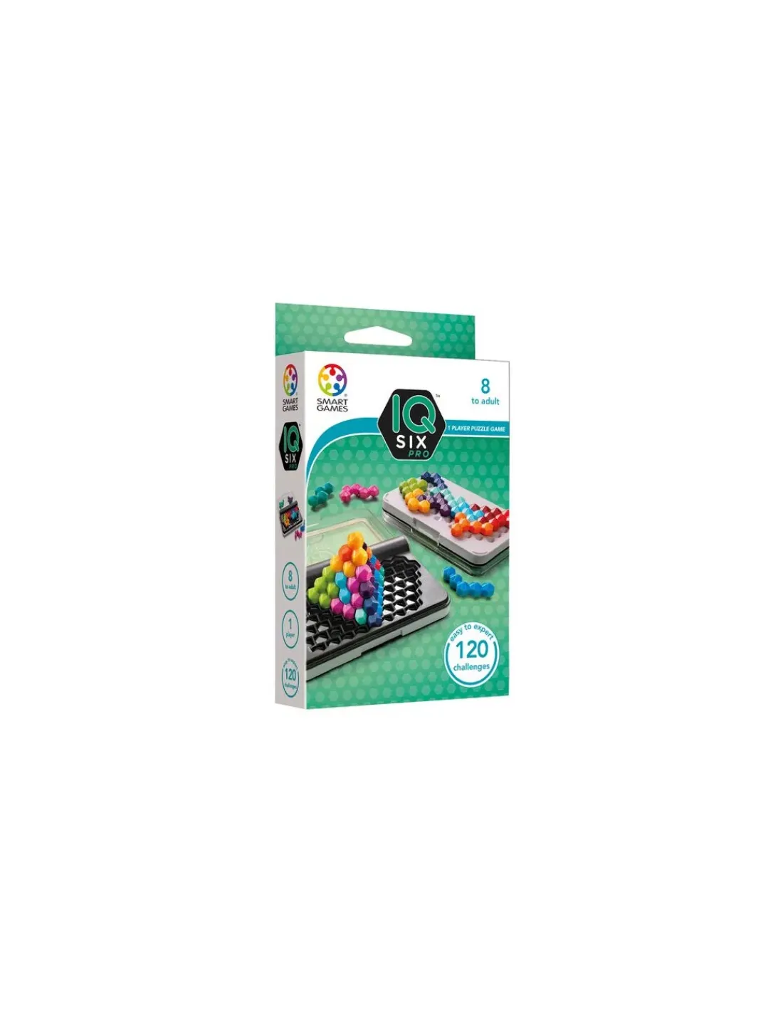 Découvrez le jeu IQ Six Pro de SmartGames, un jeu de logique et de réflexion pour les enfants dès 8 ans avec 120 défis à réaliser où vous devrez être astucieux et placer toutes les pièces sur le plateau de jeu. Ce nouvel IQ propose de jouer sur deux plateaux en 2D et de monter un tétraèdre en 3D à l’aide de pièces de formes hexagonales.