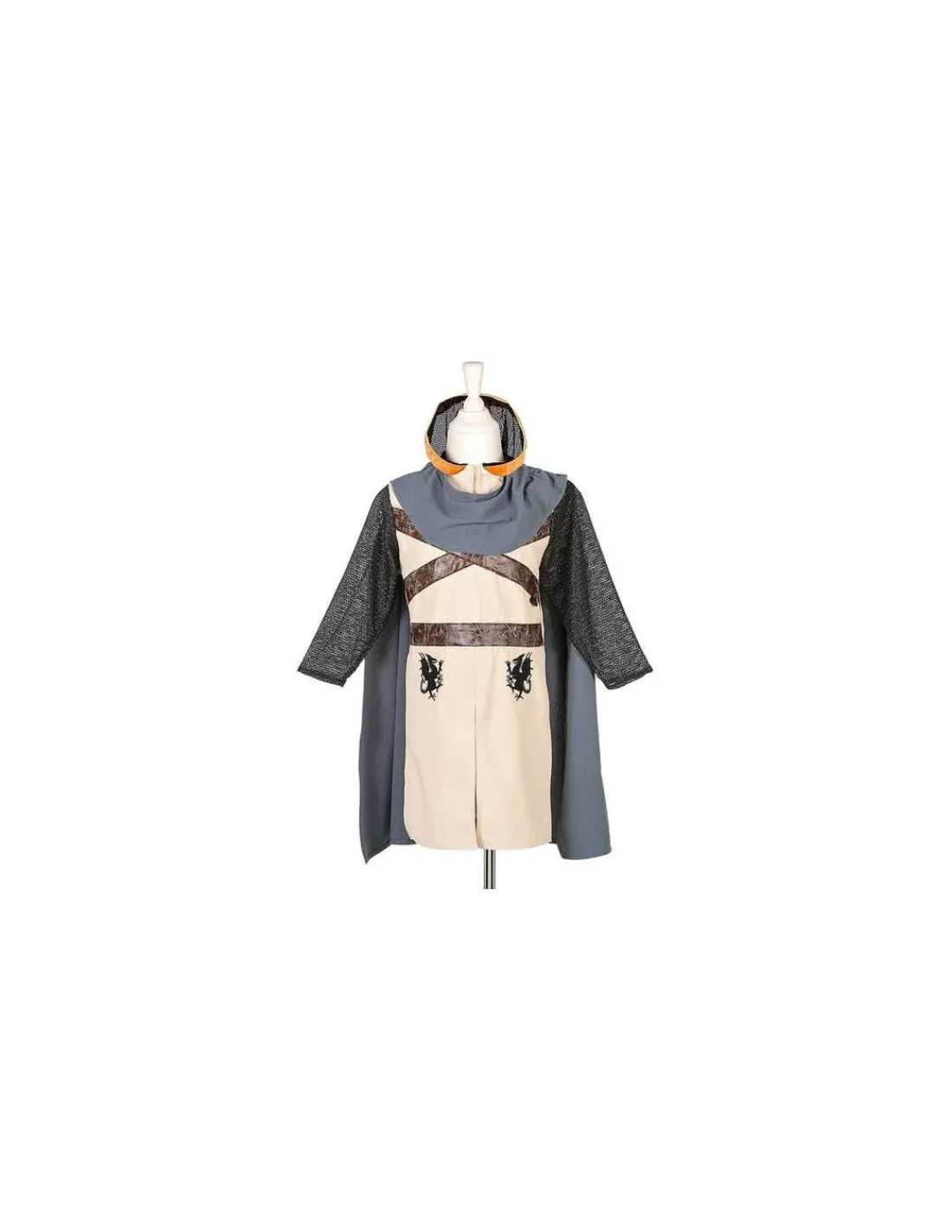 Découvrez le Déguisement chevalier Geoffrey de taille 5 à 7 ans de Souza, un costume de chevalier avec une grande cape et une capuche pour pouvoir passer inaperçu des ennemis.