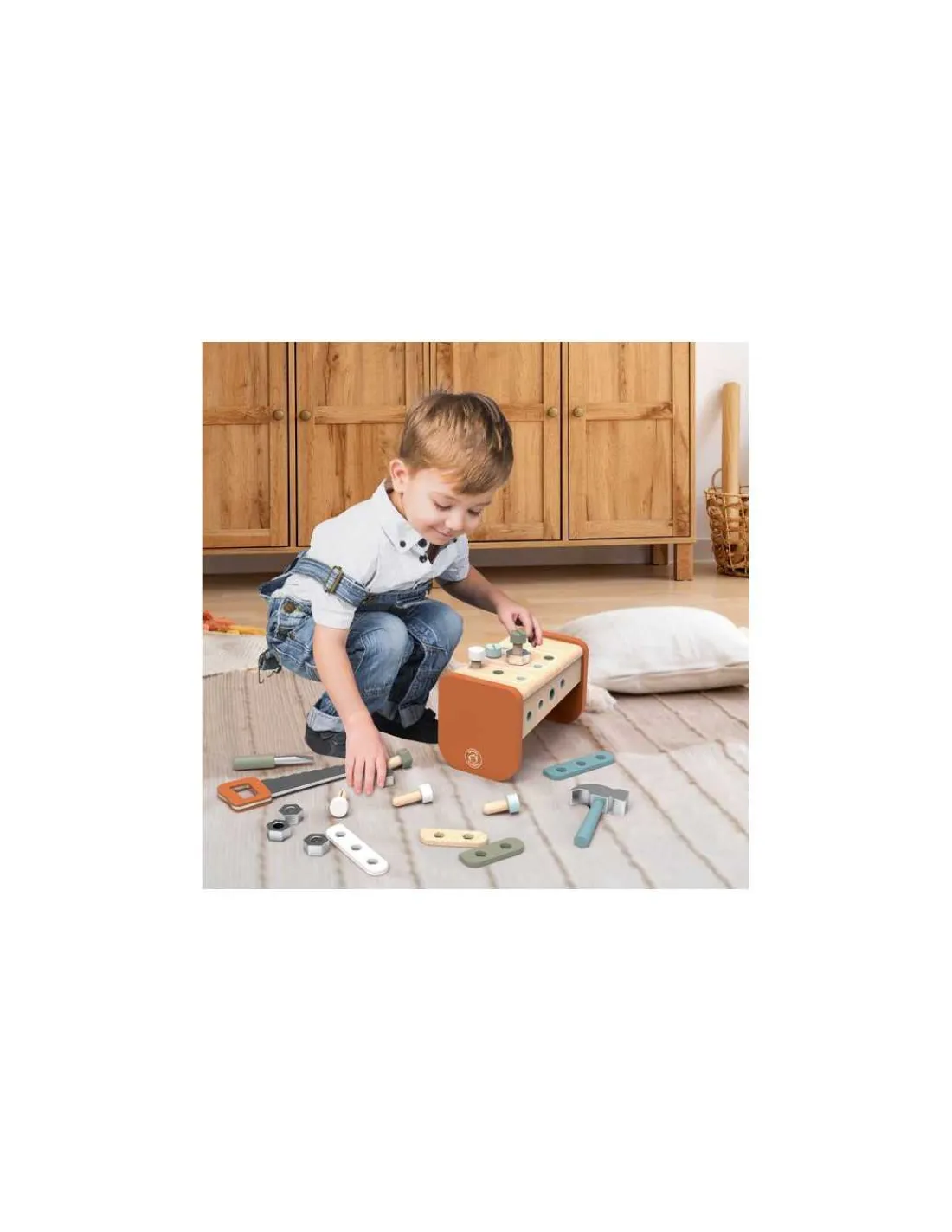 Découvrez la Boite à outils établi de Speedy Monkey, un jouet en bois sur le thème du bricolage pour les enfants dès 3 ans. Améliorez votre espace de travail avec le banc d’atelier boîte à outils 2 en 1.