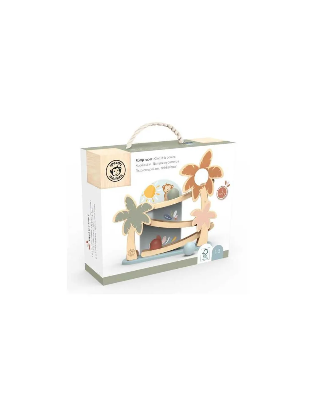 Découvrez le Circuit de boules de Speedy Monkey, un jouet d’éveil en bois pour les enfants dès 1 an. Cette rampe en bois au décor exotique offre des heures de plaisir !