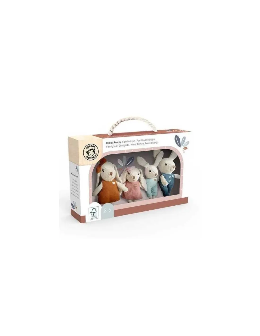 Découvrez la Famille de poupées lapin de Speedy Monkey, un set de 4 personnages en lin qui fera rêver les enfants à partir de 3 ans. Plongez dans le monde féerique du set de la Famille Lapin !