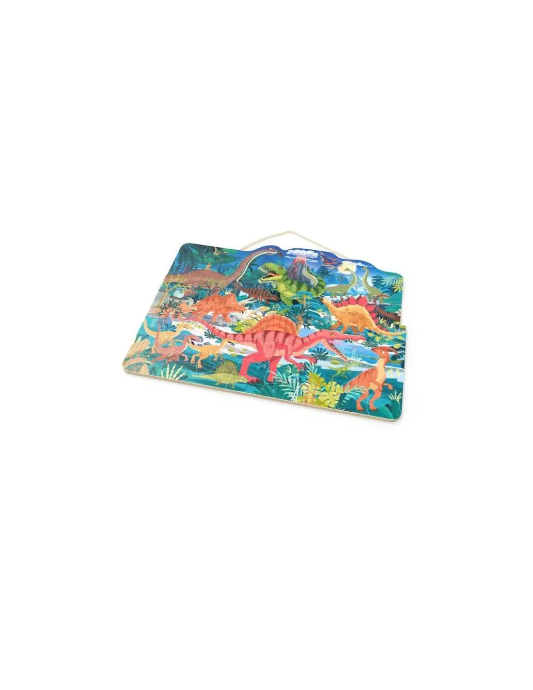 Un puzzle illustré sur le thème des dinosaures qui décore la chambre des enfants. Les pièces magnétiques doivent être placées une à une dans le dessin, développant la concentration et la logique.
