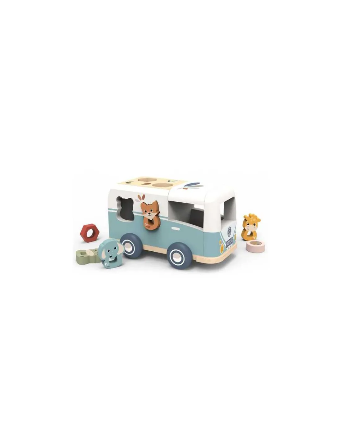Grâce à ce joli van, votre enfant partira à l’aventure en triant les formes. Un superbe combi avec des pièces représentant des animaux et des formes. Le toit du véhicule s’ouvre pour pouvoir récupérer les pièces facilement.