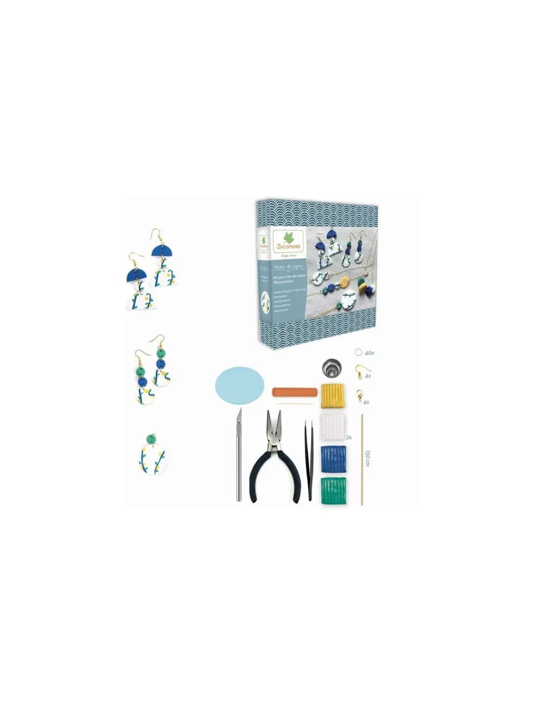 Découvrez le coffret Atelier de bijoux pâte polymère de Sycomore, un coffret créatif pour les enfants à partir de 10 ans qui trouveront tout le nécessaire pour fabriquer des bijoux avec de la pâte polymère.