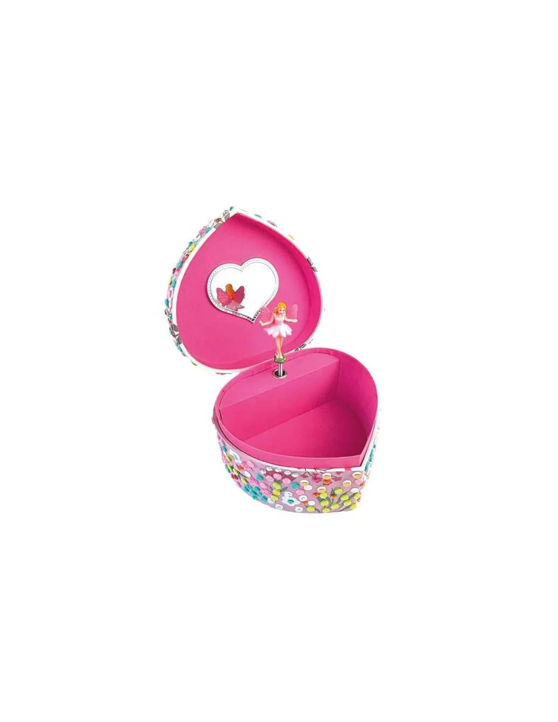 Décorez une magnifique boite à musique, il suffit de coller les petites mousses et joyaux étincelants sur les graphismes correspondants. Un très joli coffret à bijoux pour ranger ses bagues, ses bracelets, ses barrettes… et regardez tourner la ballerine fée au son de la mélodie.