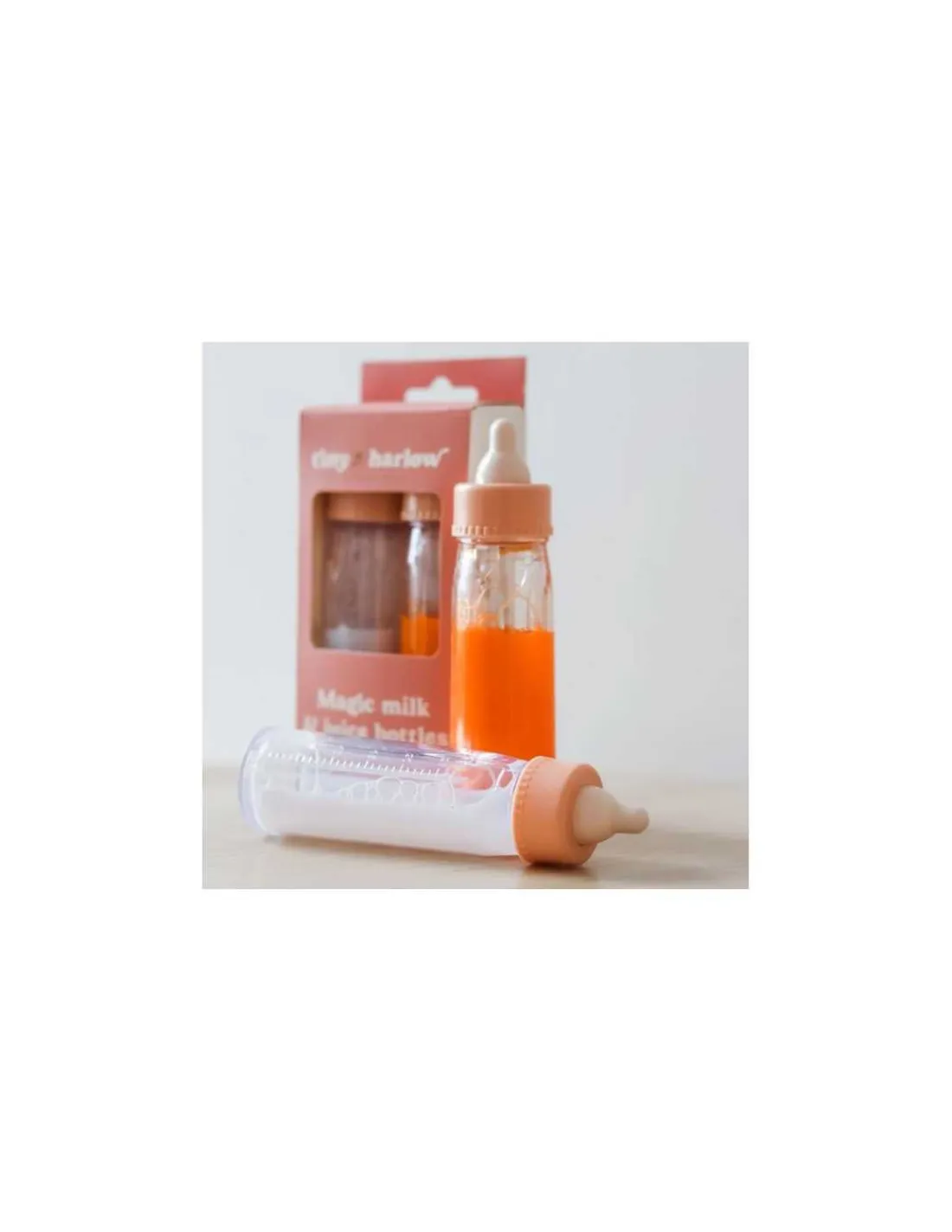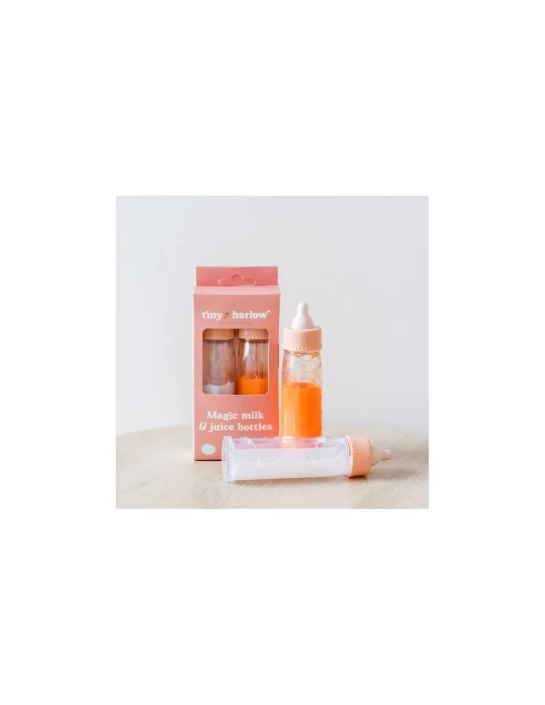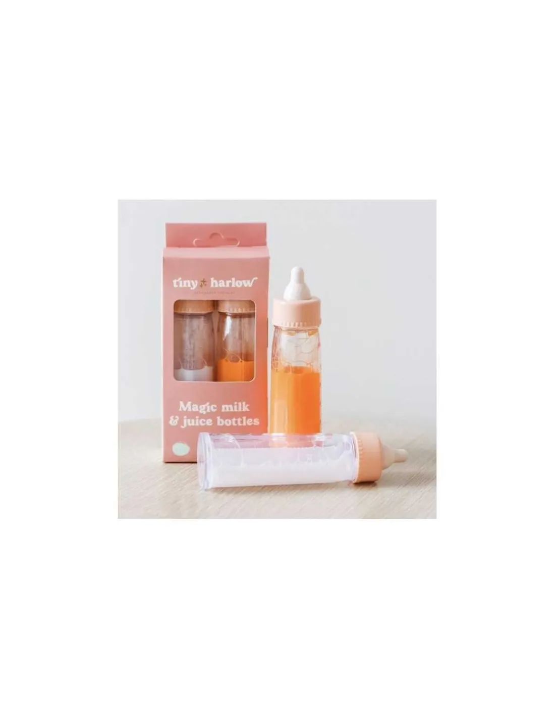 Découvrez les biberons magiques de Tiny Harlow, un coffret d’accessoires indispensables pour les enfants qui aiment jouer à la poupée dès 3 ans. Un biberon de lait et un biberon de jus de fruits pour donner à boire à son poupon.