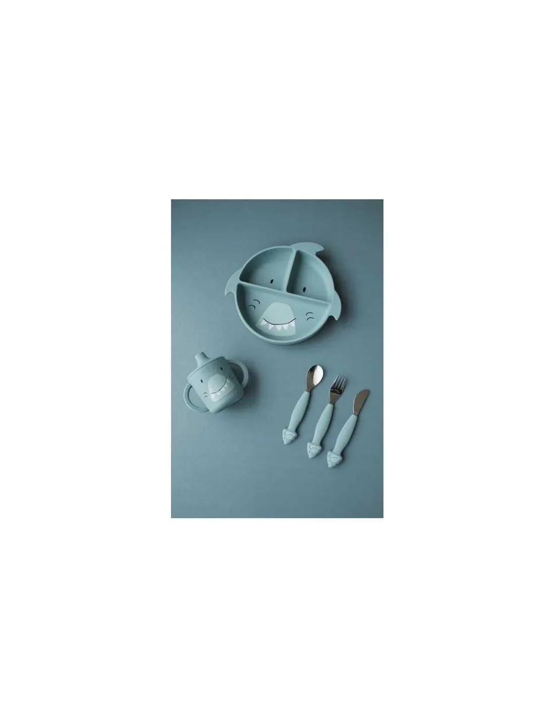 Découvrez le gobelet en silicone requin de Trixie, une tasse d’apprentissage pour accompagner votre enfant dans ses premiers repas et ses premiers découvertes gustatives.