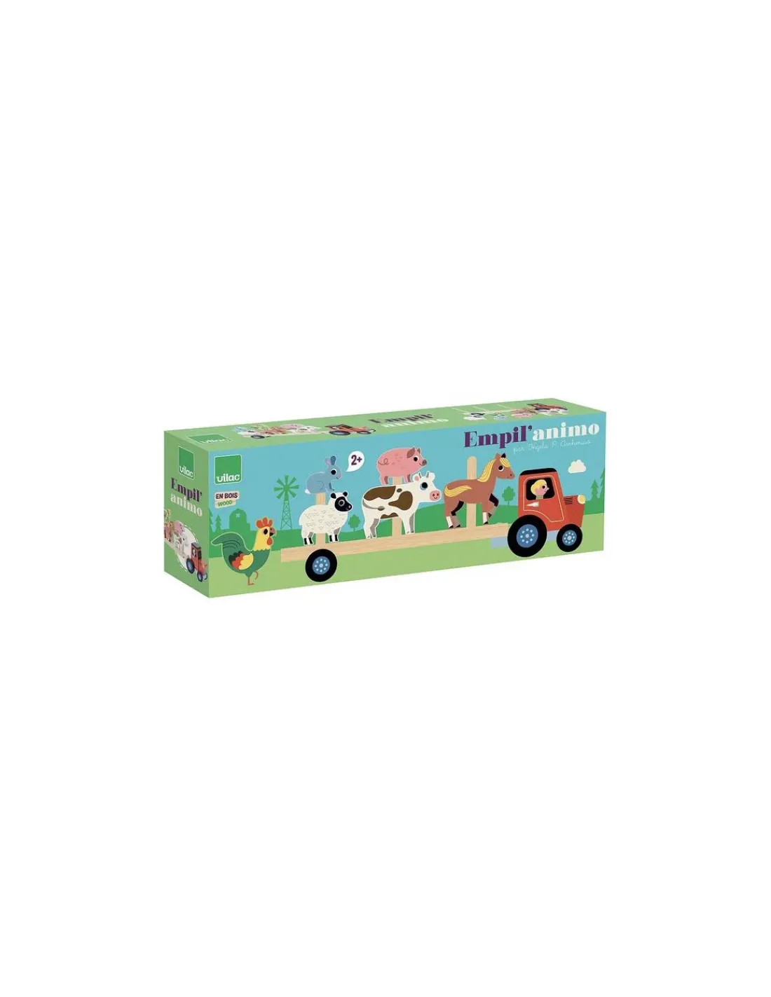 Découvrez le jeu empil’animo de la ferme de Vilac, un jouet d’éveil en bois pour les enfants dès 2 ans, un jeu d’empilement avec un tracteur et des animaux illustré par Ingela P.Arrhenius.