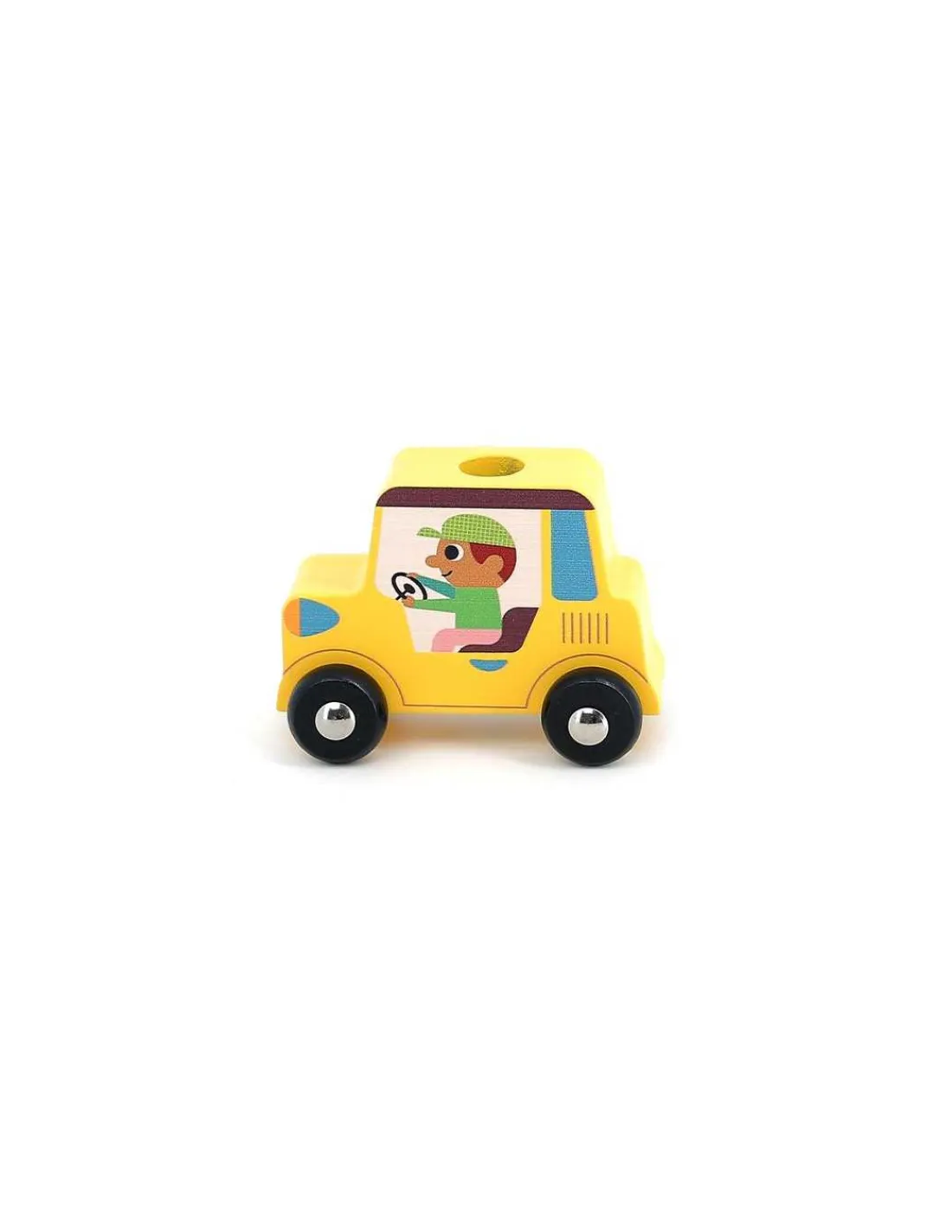 Découvrez le jeu Empil’auto 4 pièces de Vilac, un jouet d’éveil en bois pour les enfants dès 2 ans, un jeu d’empilement avec un camion et des voitures illustré par Ingela P.Arrhenius.