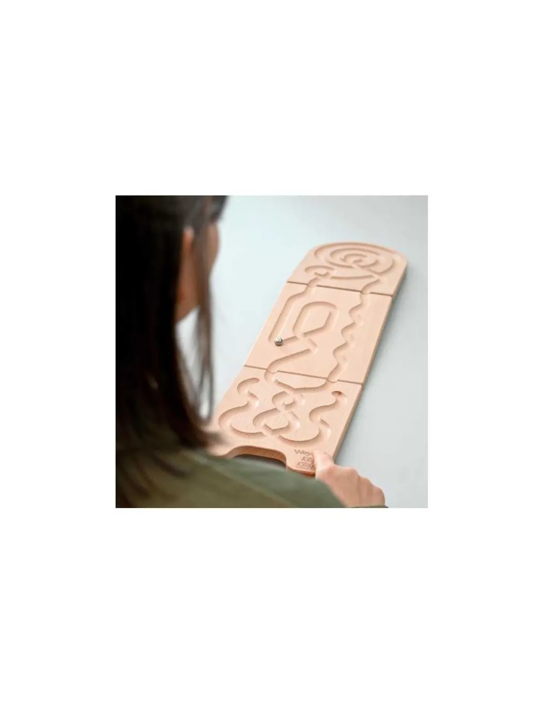 En touchant habilement le premier élément et à l‘aide de la gravité, une boule est guidée à travers le parcours. Il est nécessaire de penser différemment à chaque case car l‘inclinaison change.